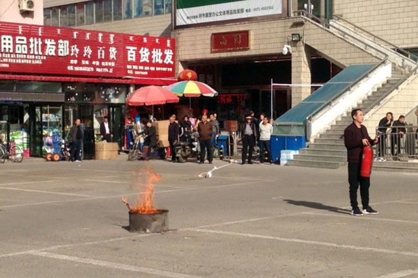 春季是火災(zāi)重點防控時期,做好安全管控是商場經(jīng)營發(fā)展工作中的重點,同時為了進一步增強全體員工及商戶的消防安全防范意識,熟練并正確掌握滅火器材在實際應(yīng)用中的操作方法,提高全員面對突發(fā)火災(zāi)事故時的初期火災(zāi)撲救能力。商場于2018年4月12日早8:45在通達商場南廣場舉行2018年春季實操滅火演習(xí)。