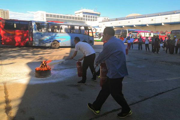 駐站交警、駐站運(yùn)管相關(guān)領(lǐng)導(dǎo)親臨現(xiàn)場,參與消防演練
