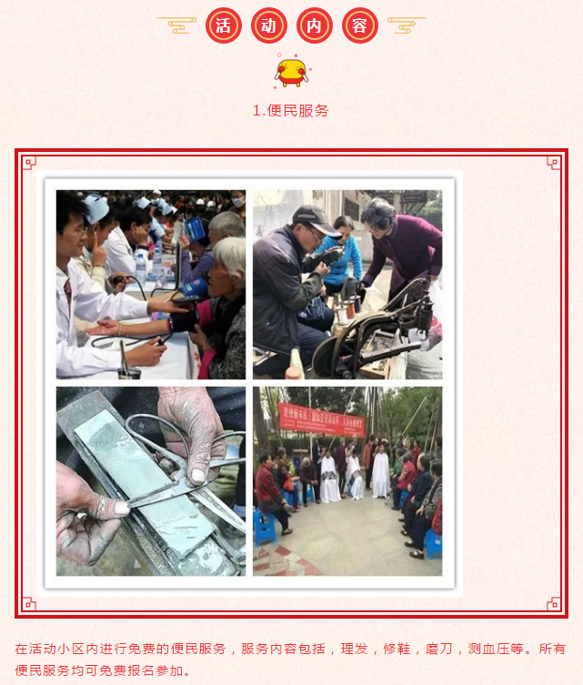 1.周日上午10點(diǎn)開始所有的便民服務(wù)