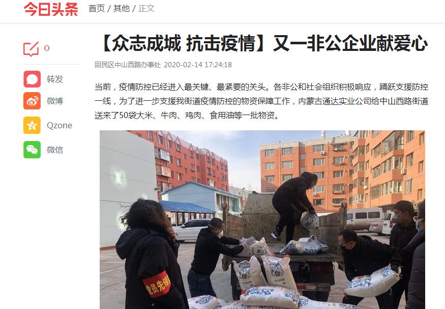 當(dāng)前,疫情防控已經(jīng)進(jìn)入最關(guān)鍵、最緊要的關(guān)頭。各非公和社會(huì)組織積極響應(yīng),踴躍支援防控一線,為了進(jìn)一步支援我街道疫情防控的物資保障工作,內(nèi)蒙古通達(dá)實(shí)業(yè)公司給中山西路街道送來(lái)了50袋大米、牛肉、雞肉、食用油等一批物資。