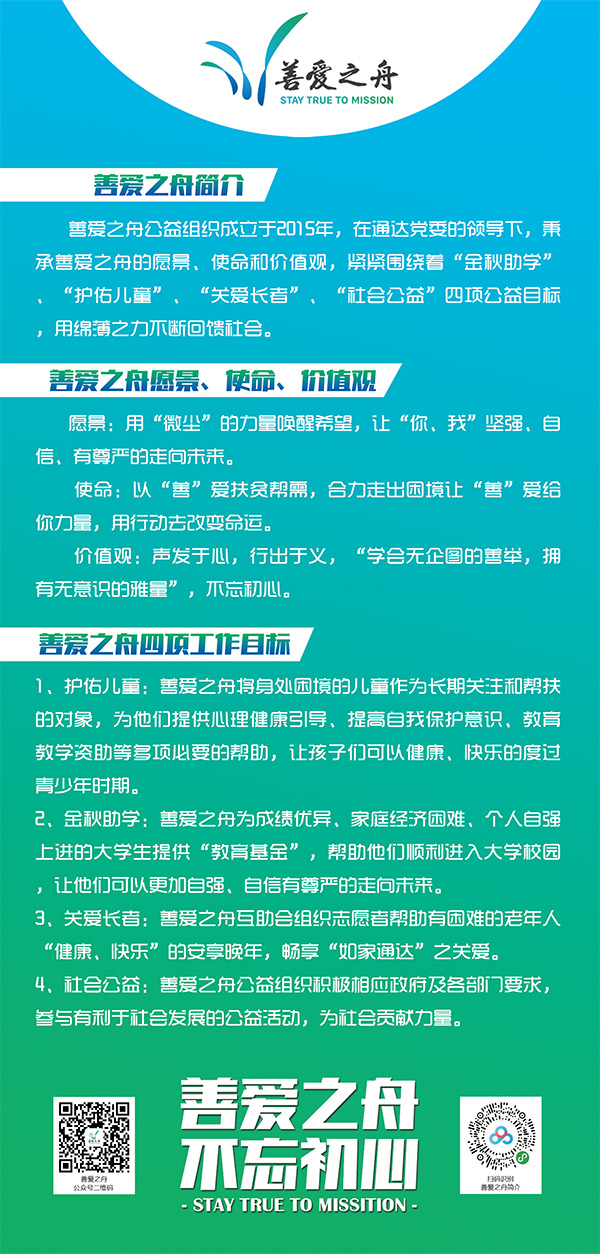 伴隨著2020年度高考的結(jié)束,關(guān)注貧困大學(xué)生,再度成為我們身邊的話題,以“善”愛扶貧幫需,合力走出困境,讓“善”愛給你力量,用行動去改變命運,善愛之舟金秋圓夢公益助學(xué)再次起航。