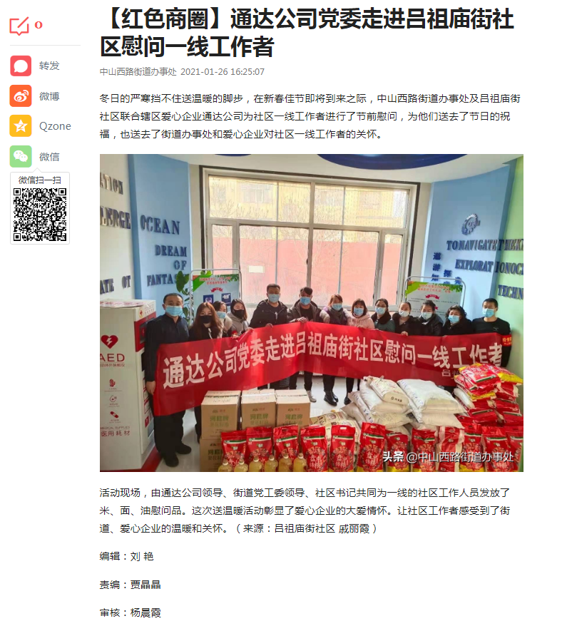 【紅色商圈】通達(dá)公司黨委走進(jìn)呂祖廟街社區(qū)慰問一線工作者 |