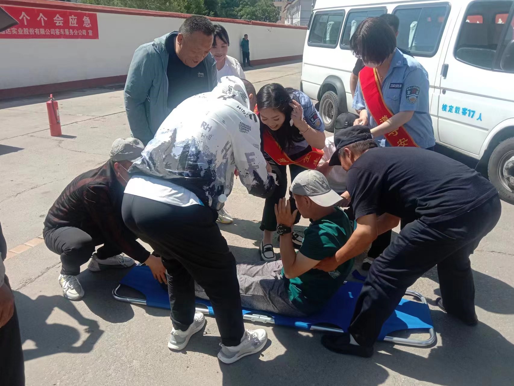 演練時(shí)間于2023年6月20日開始,為期一天,通過成立演練指揮部。負(fù)責(zé)本次演練的策劃、組織、指揮、調(diào)度、物資籌備、場地布置等工作。通過模擬事故情景設(shè)置,讓大家身臨其境。 此次模擬交通事故應(yīng)急演練時(shí)間設(shè)為:2023年6月20日10:30分兩臺(tái)大客車相向行駛發(fā)生碰撞事故,造成乘客1人受重傷,5人受輕傷的一般交通事故。 事故發(fā)生后,駕駛員第一時(shí)間查看受傷人員情況后,然后立刻報(bào)警,同時(shí)電話通知公司安全負(fù)責(zé)人或安全責(zé)任人,立刻保護(hù)事故現(xiàn)場,并在事故車前后150米外擺放反光安全三腳架。駕駛員或乘務(wù)員立刻撥打122報(bào)警、撥打120請(qǐng)求醫(yī)療救援,撥打公司安全負(fù)責(zé)人電話,說明事故現(xiàn)場情況,請(qǐng)求公司支援。