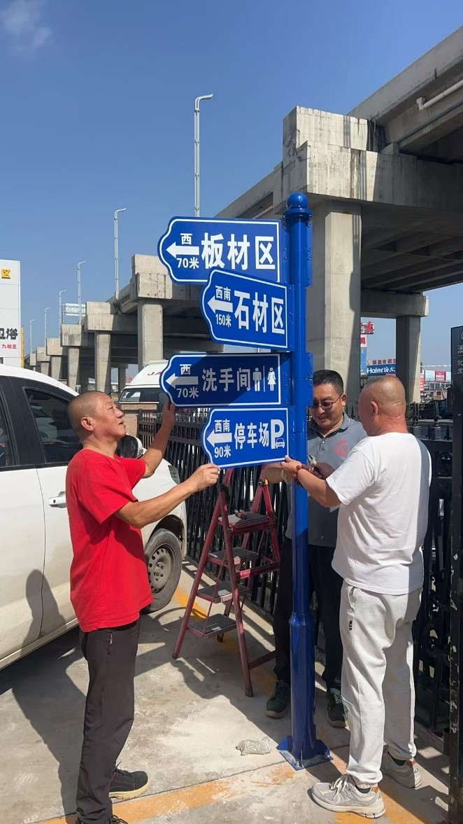 作為本地知名的綜合性建材交易平臺,通達(dá)建材市場涵蓋陶瓷、門窗、板材、五金等多個(gè)經(jīng)營品類,商戶數(shù)量眾多、經(jīng)營區(qū)域劃分細(xì)致。此前,部分新老客戶因?qū)κ袌霾季植皇煜ぃ加姓业旰臅r(shí)較長的情況,一定程度上影響了商戶的接待效率。為切實(shí)解決這一問題,市場管理方經(jīng)過前期實(shí)地調(diào)研,充分征求商戶意見,最終確定了指示牌的安裝方案。